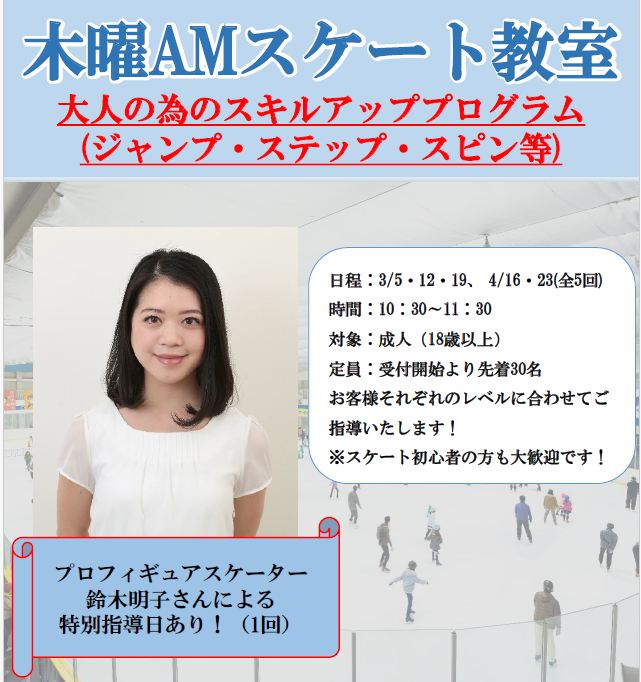 期間限定成人向けスケート教室 開講!!