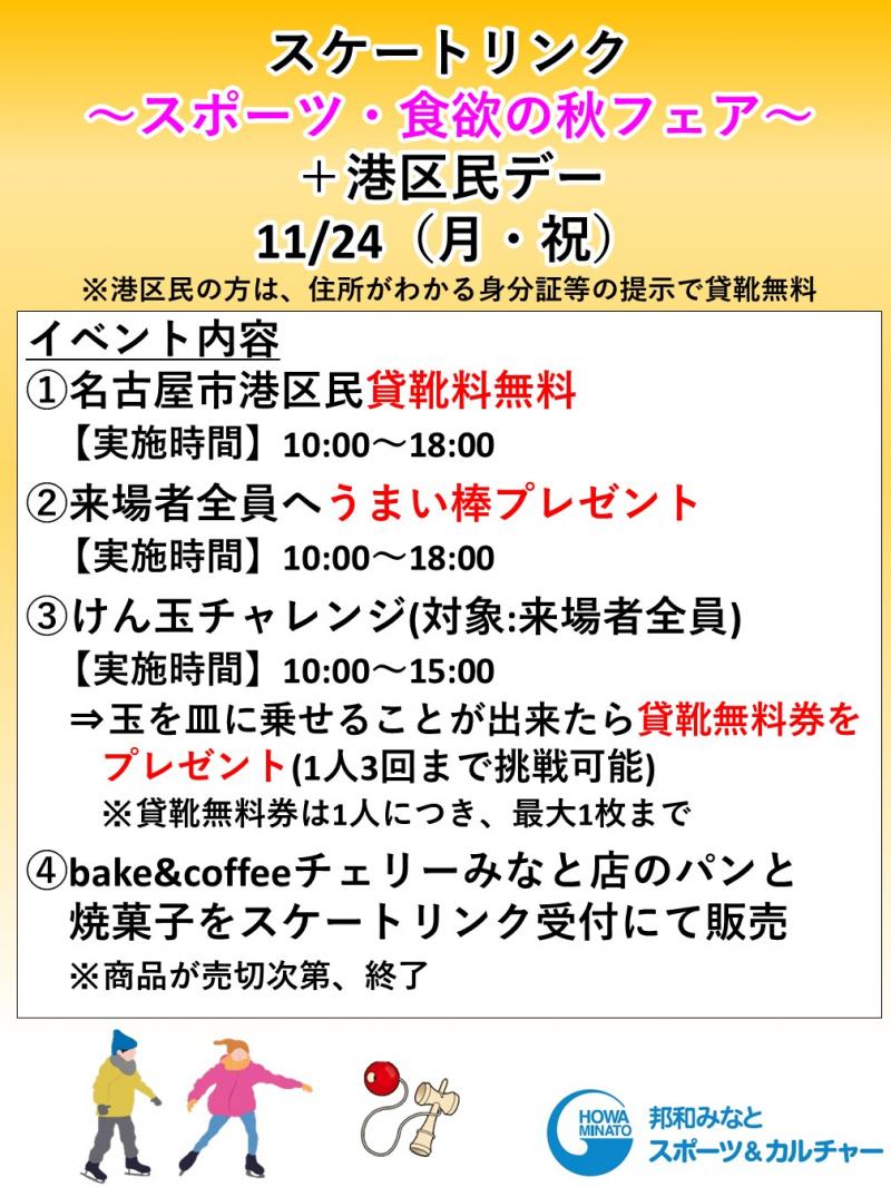 11月24日(月・祝)スケートリンクイベント ~スポーツ・食欲の秋フェア~ 港区民デー