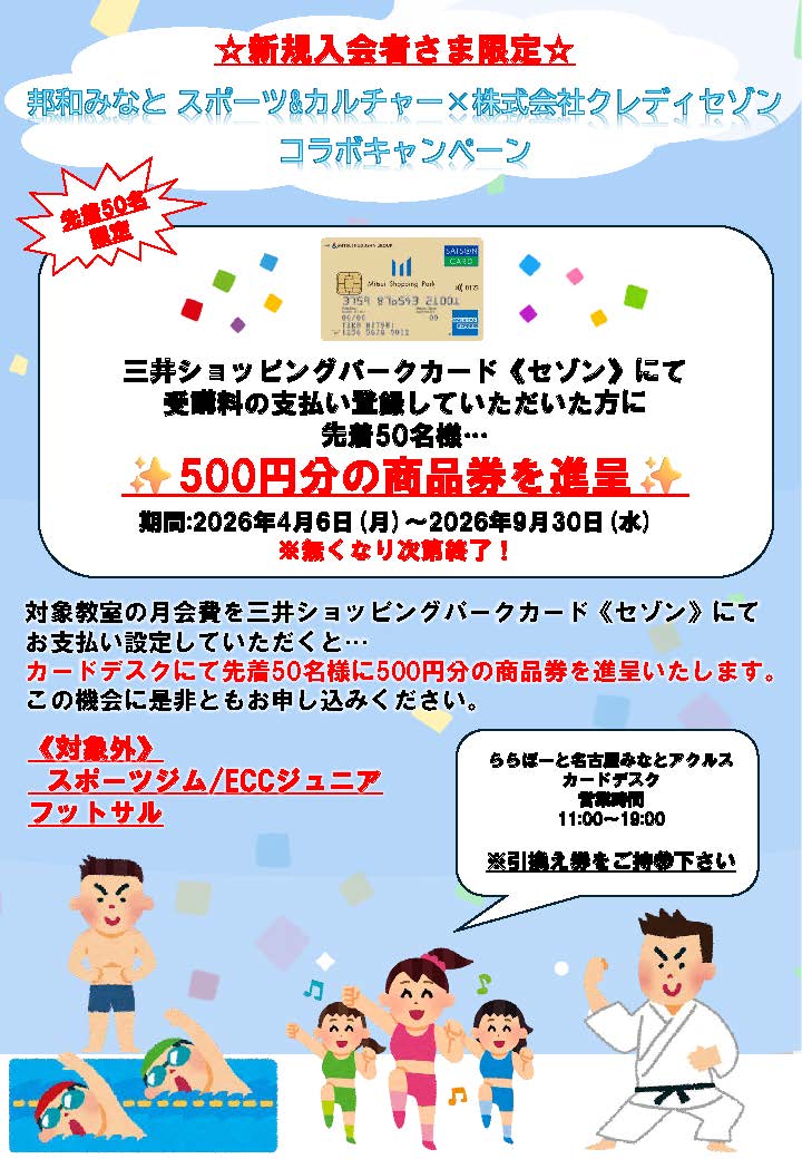 新規入会×三井ショッピングパークカード《セゾン》で商品券をプレゼント!(期間延長)